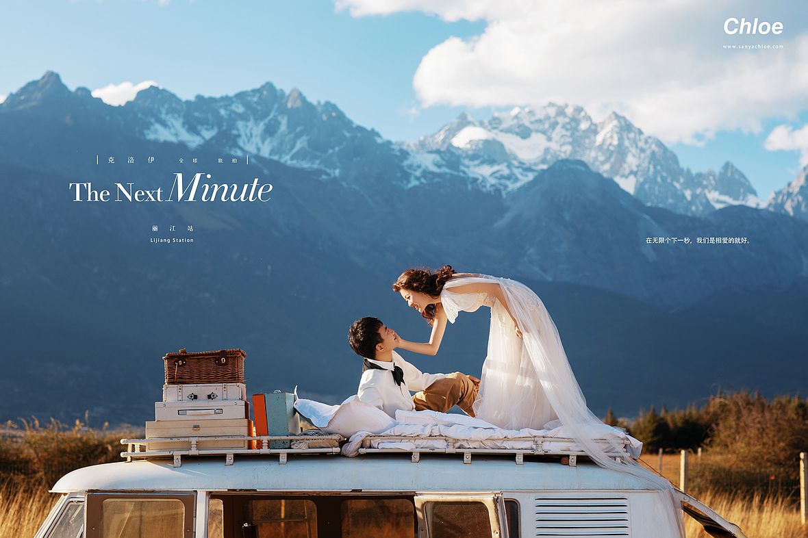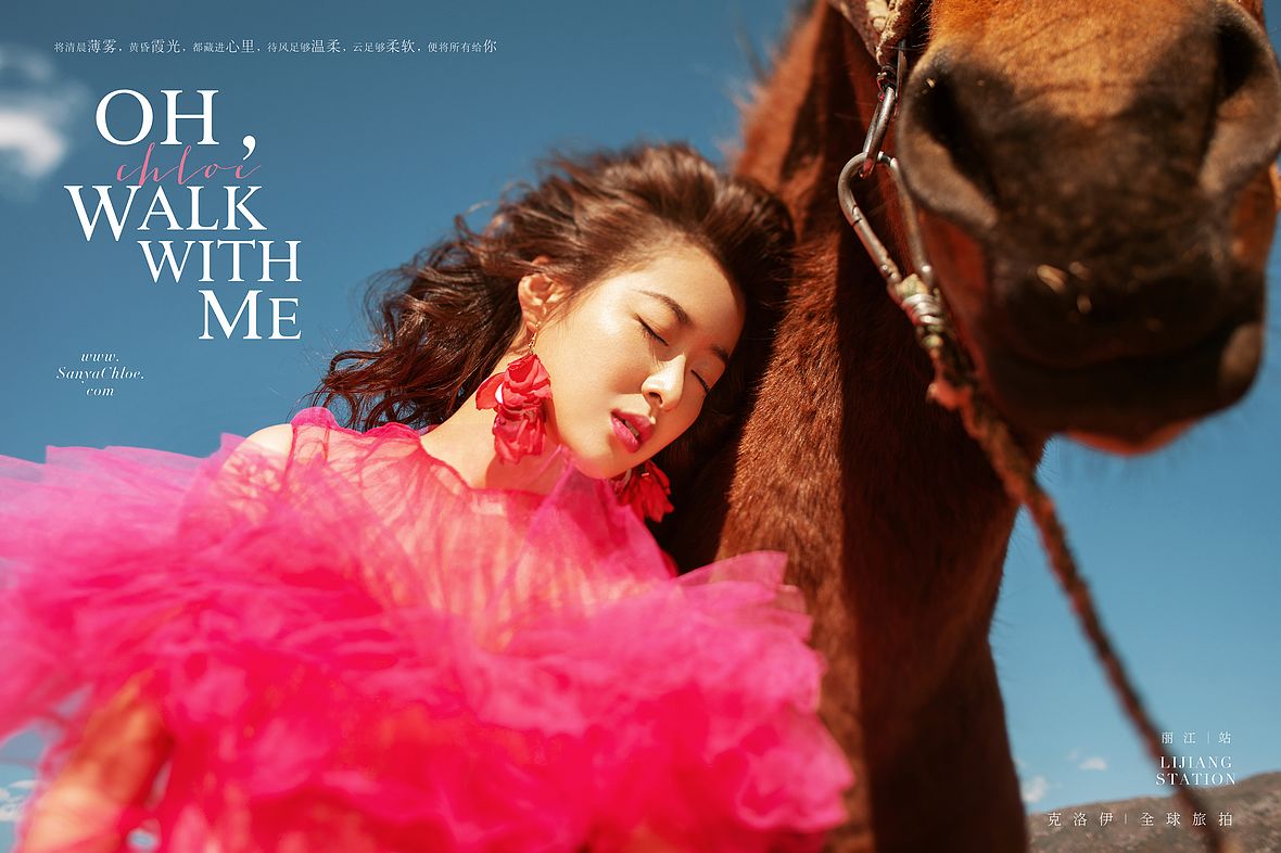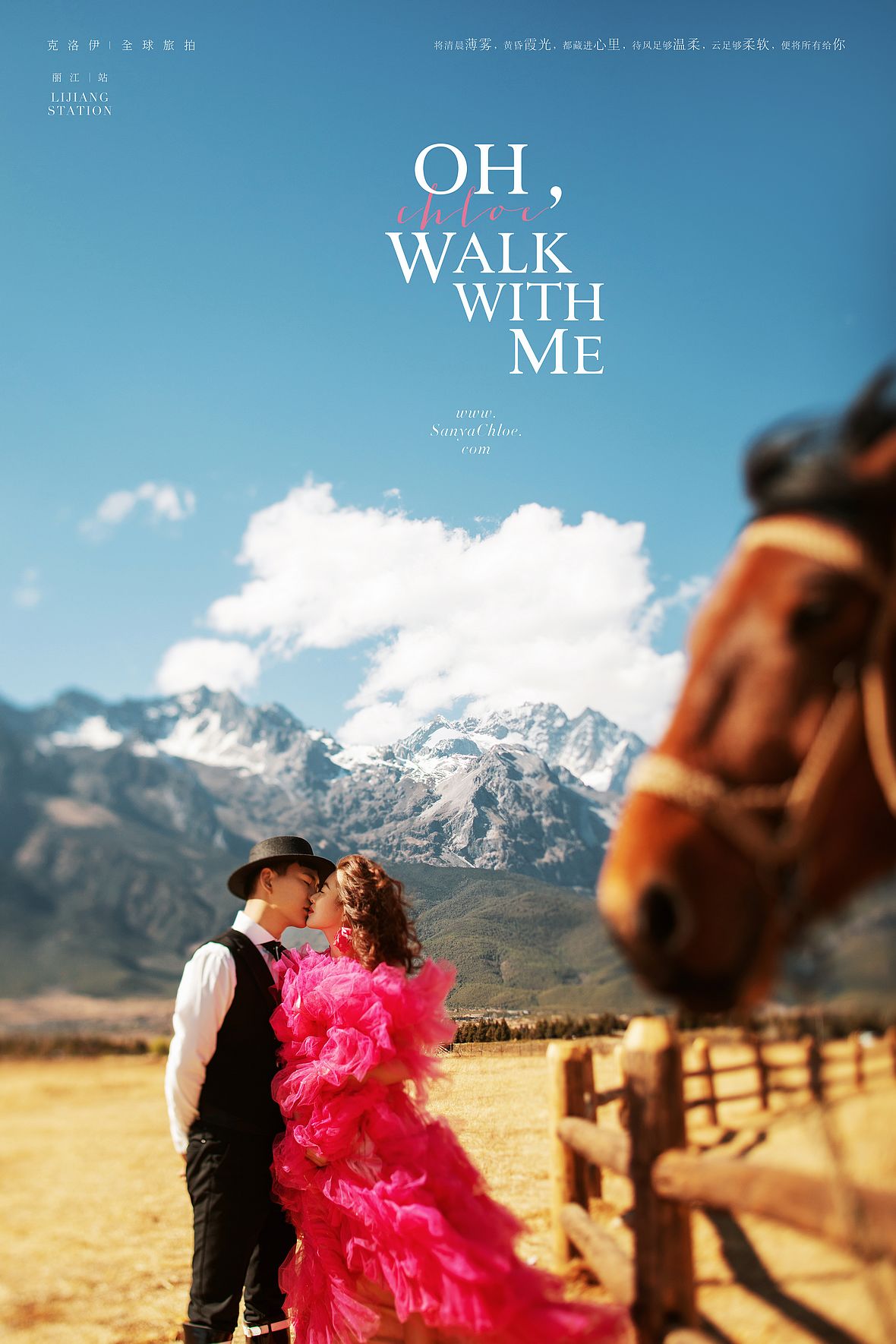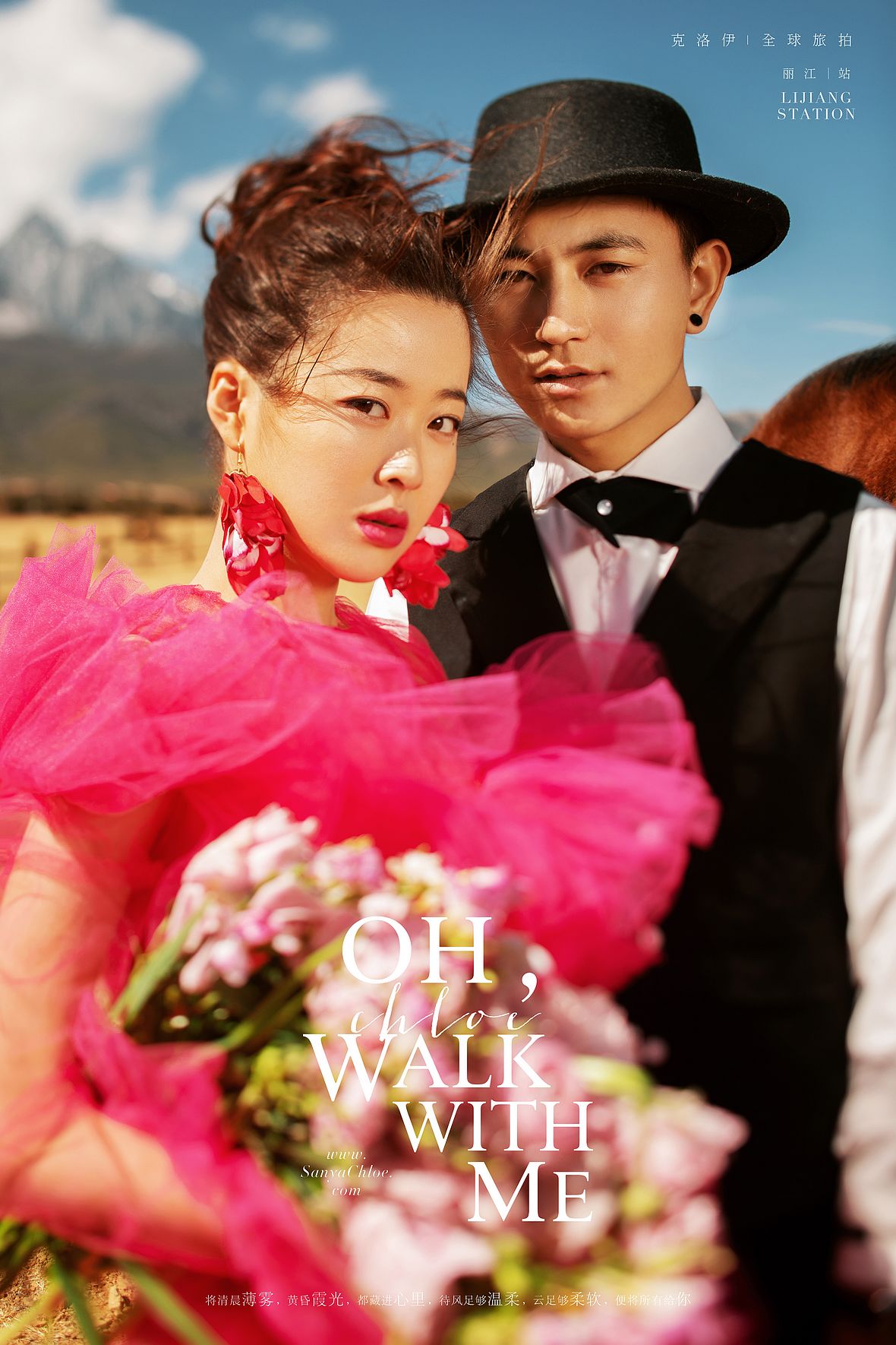 雪山巍峨,云朵繽紛,不同于其他馬場婚紗照風(fēng)格,這里更有西南地域的色彩。這不僅是來自麗江的文化渲染,更歸功于克洛伊創(chuàng)作團(tuán)隊(duì)的精心制作。