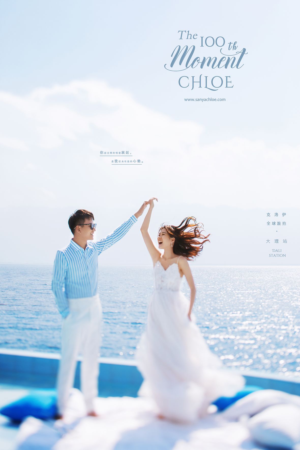 洱海邊上的網(wǎng)紅泳池,懸空而立在洱海上空,與洱海連成一條海平線。寬闊的洱海為背景,克洛伊美學(xué)團(tuán)隊(duì)該如何呈現(xiàn)泳池夢幻感的婚紗照呢?往下看你就知道了。