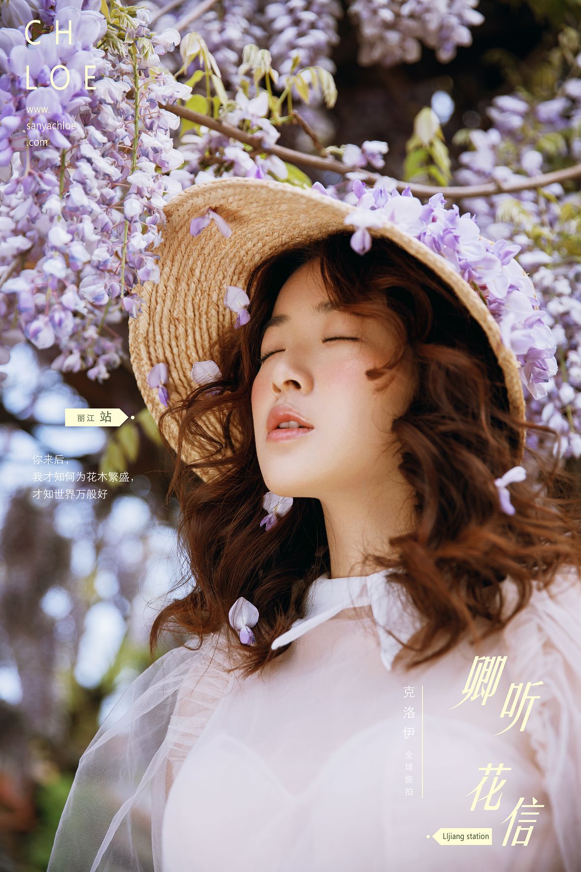 在帽子上,克洛伊全球造型總監(jiān)軼楠老師也做了點小心思。紫藤花裝飾帽檐,零星的花瓣隨意散落在帽子上,就像風(fēng)吹落的花瓣落在了帽子上,讓女生的造型更加的生動。