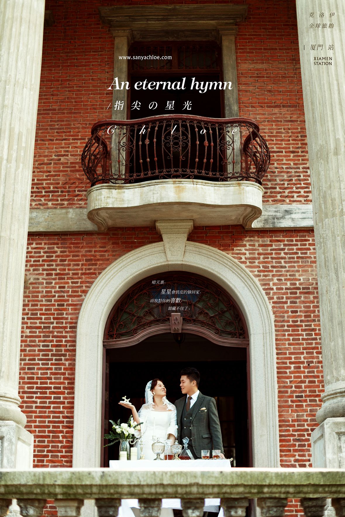 背后是鼓浪嶼的美景,新人倚欄而靠,輕柔的陽(yáng)光撒到臉上,真是想讓人戀愛的美好時(shí)光。